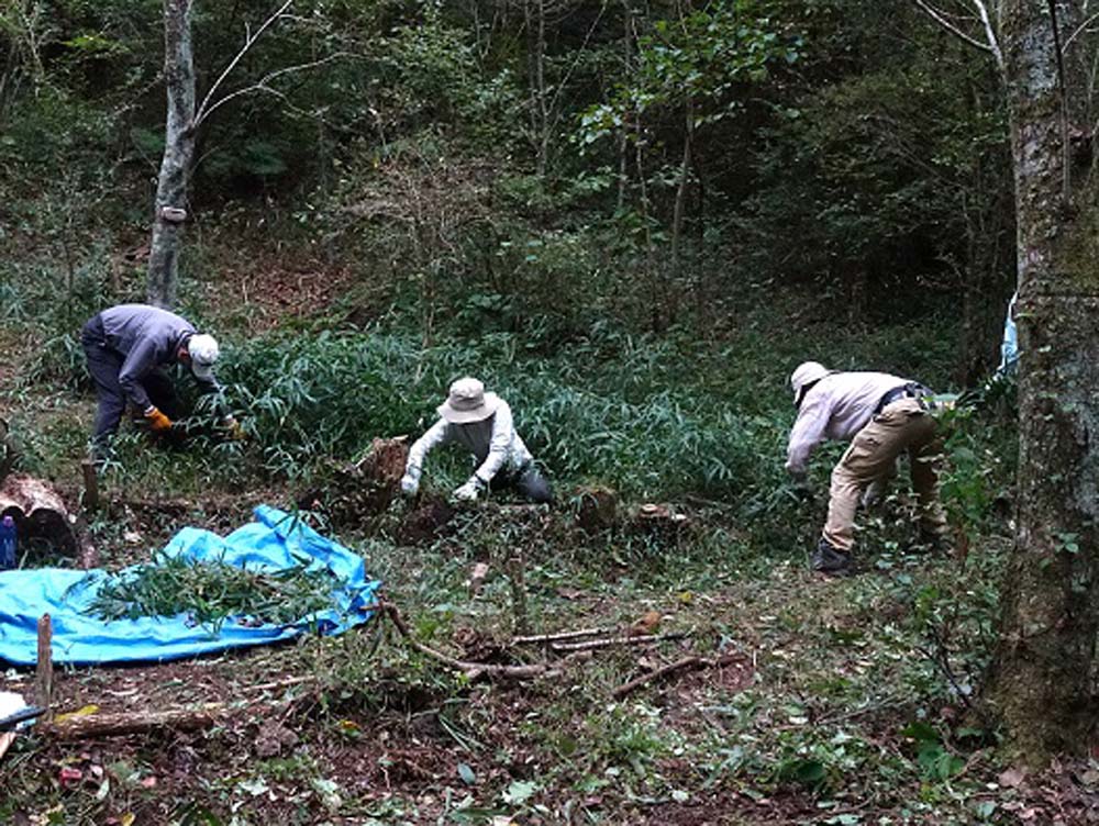 カタクリ・ギフチョウが来春に生育できる環境を作る為に笹刈り等の作業をします