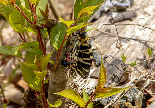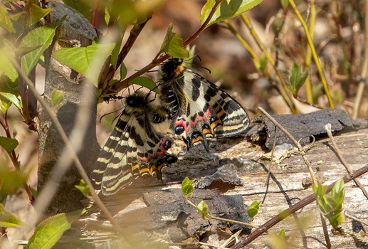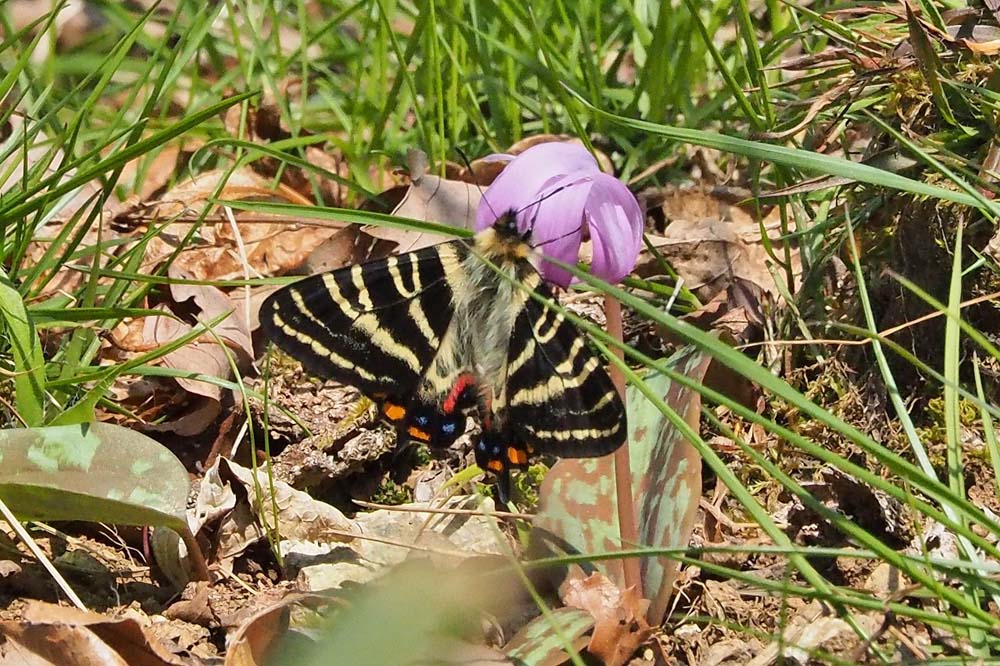 曇ると飛びません。カタクリ、スミレ等の花の蜜を吸います。♂は開けた頂上に上ってくる習性があります。