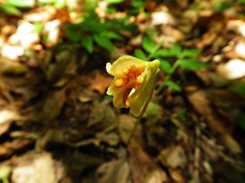 以西では希少種なので採取しないでください。3月から1枚葉が出て来て、4月には2枚葉の花芽を付けたの出てきて、花を咲かせ、5月
