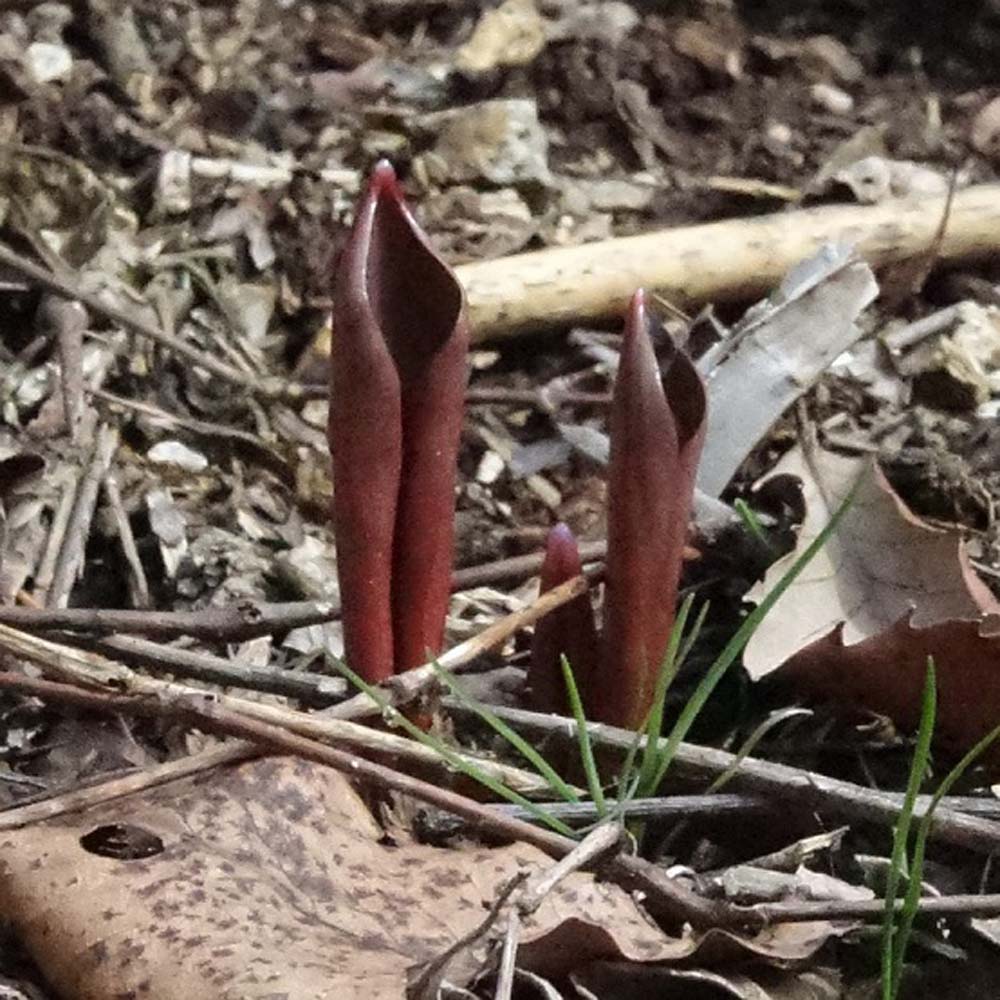 花芽を付けた2枚葉が初めて確認できました。まだ1か所で数株しか出ていません。