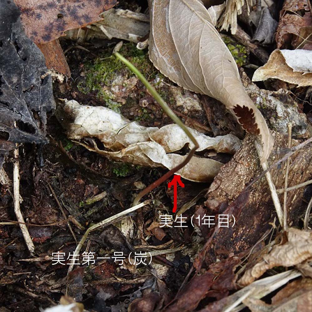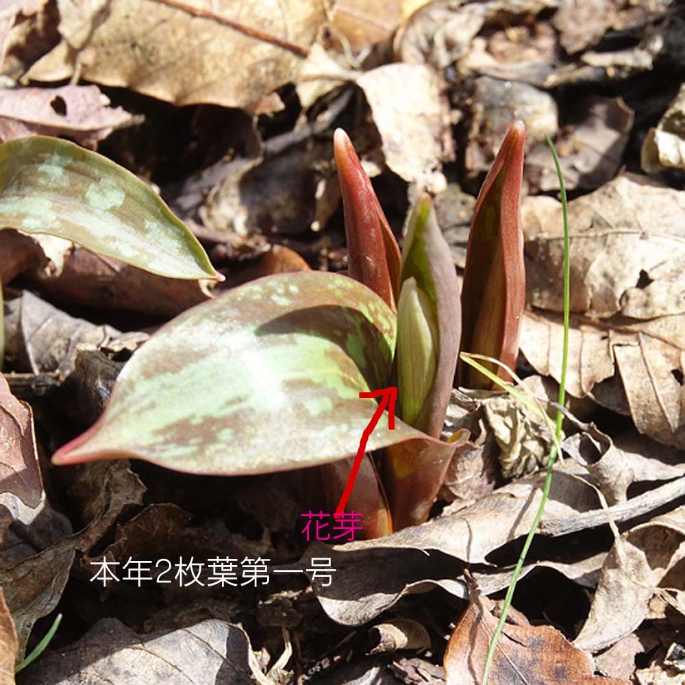 ◎花芽を付けた2枚葉と実生(1年目)を3月10日に確認しました。