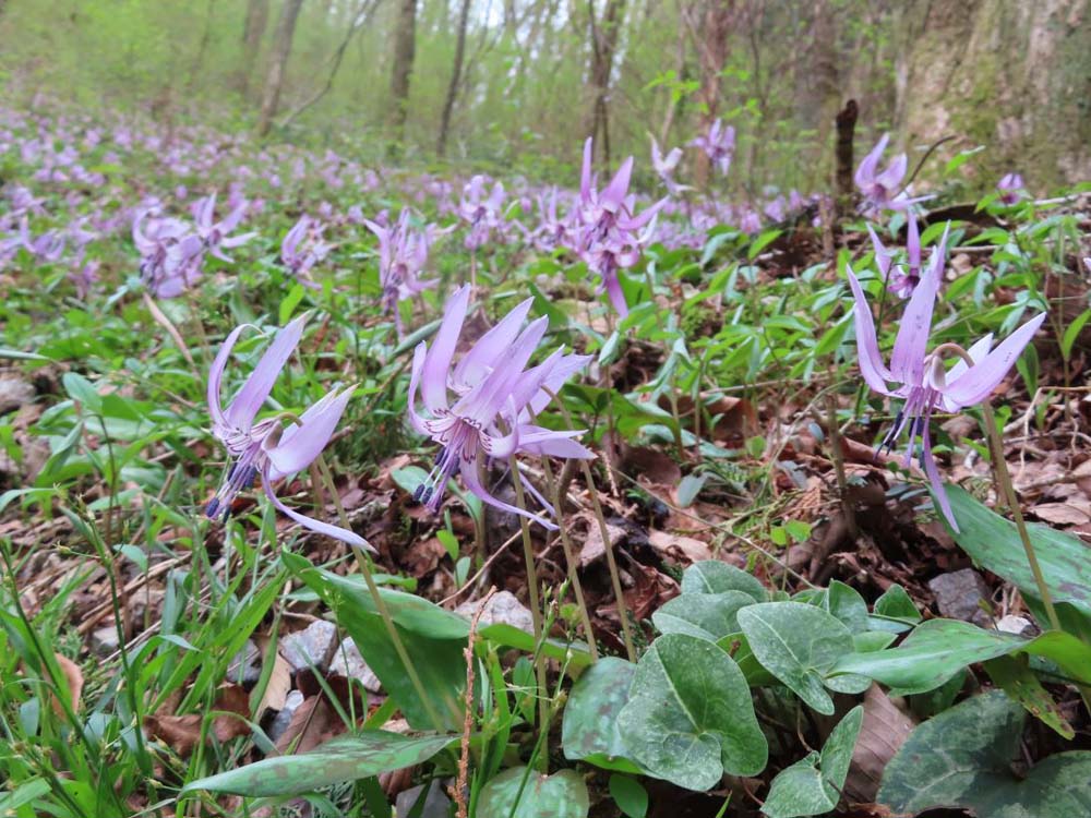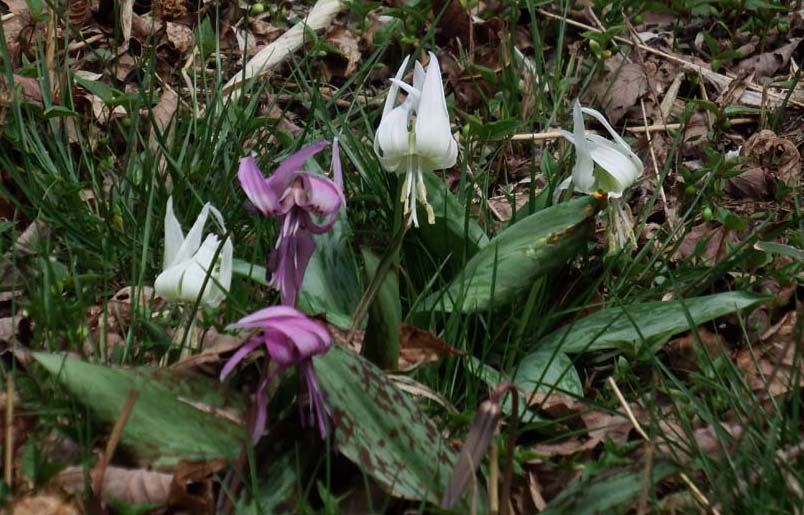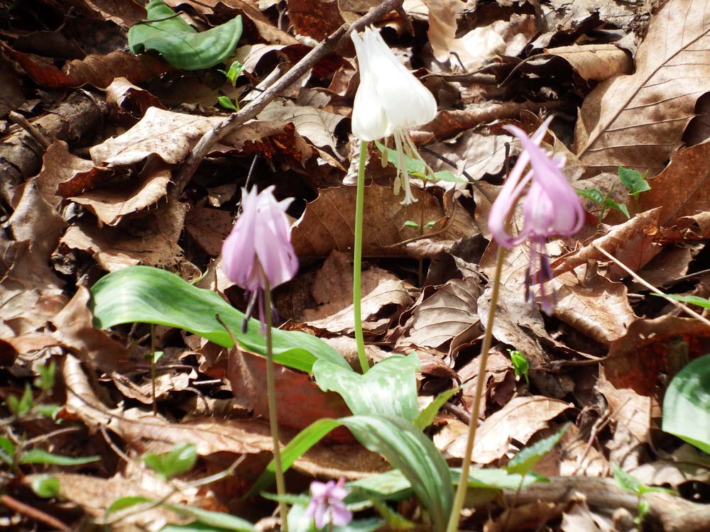 ◎4月17日(月)~ カタクリが各谷で満開になりました。シロバナカタクリも別株が咲き出しました。