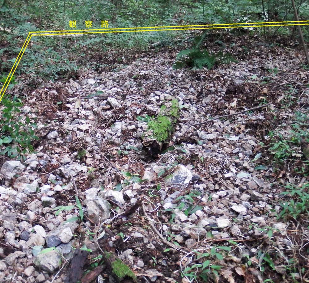 イノシシの侵入跡                           イノシシが掘り起こした後、集中豪雨で表土が流される