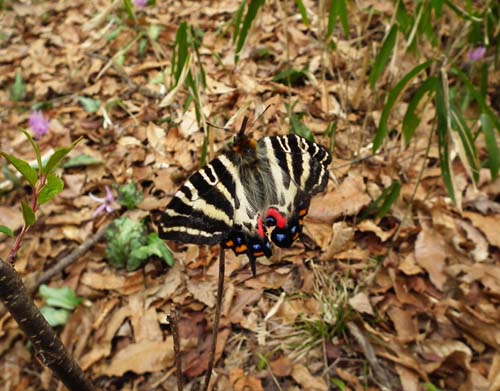 曇ると飛びません。カタクリ、スミレ等の花の蜜を吸います。♂は開けた頂上に上ってくる習性があります。
