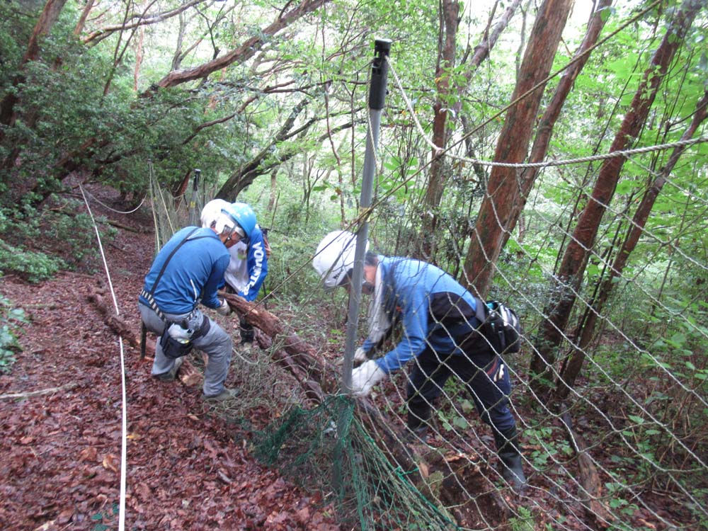 ネット際を見回り、倒木があれば修復処理をする。センサーカメラ点検をして動物の生態を観察する。