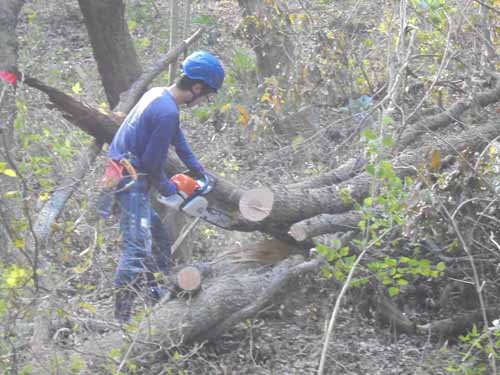 ◎毎年秋の作業では下草刈りと雑木刈りと枯木の伐採作業を行っています。