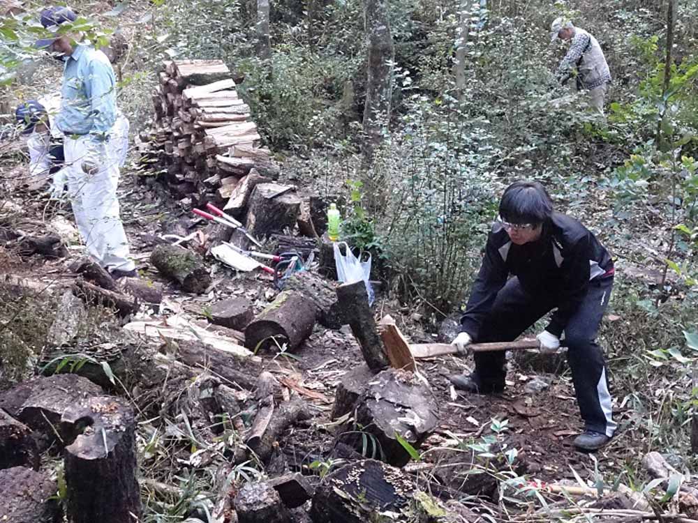 に整備作業をしています。若い学生さん達IVUSA会員(立命館大学生)からも参加協力していただきました。笹や下草を刈り
