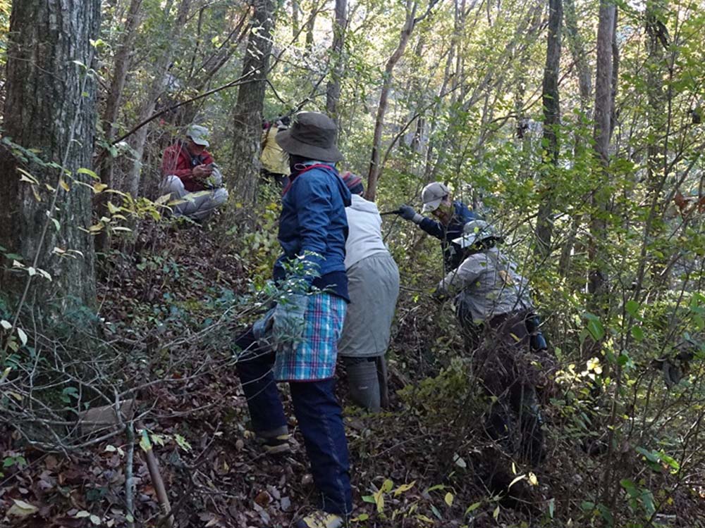たくさんの方がカタクリやギフチョウを見学に来ていただけるようにカタクリに適した環境作りの為に、9月から11月下旬と3月
