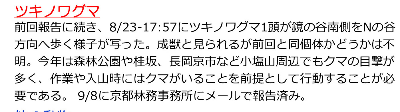 ◎<ご注意>小塩山にツキノワグマが出現しました。