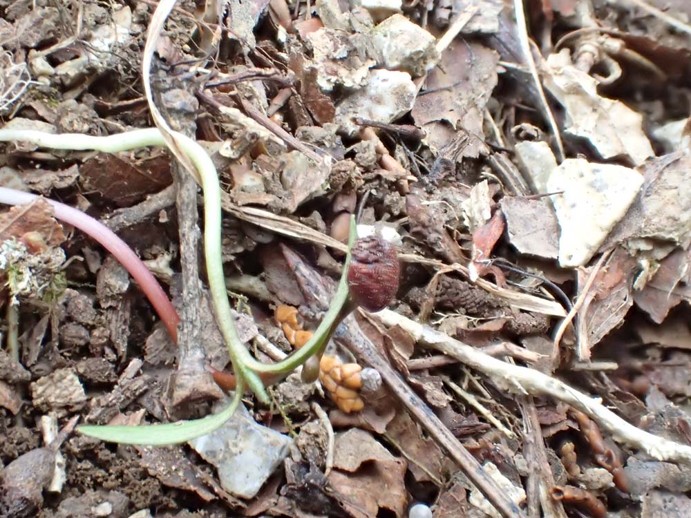 花芽を付けた2枚葉が初めて確認できました。まだ2か所で数株しか出ていません。