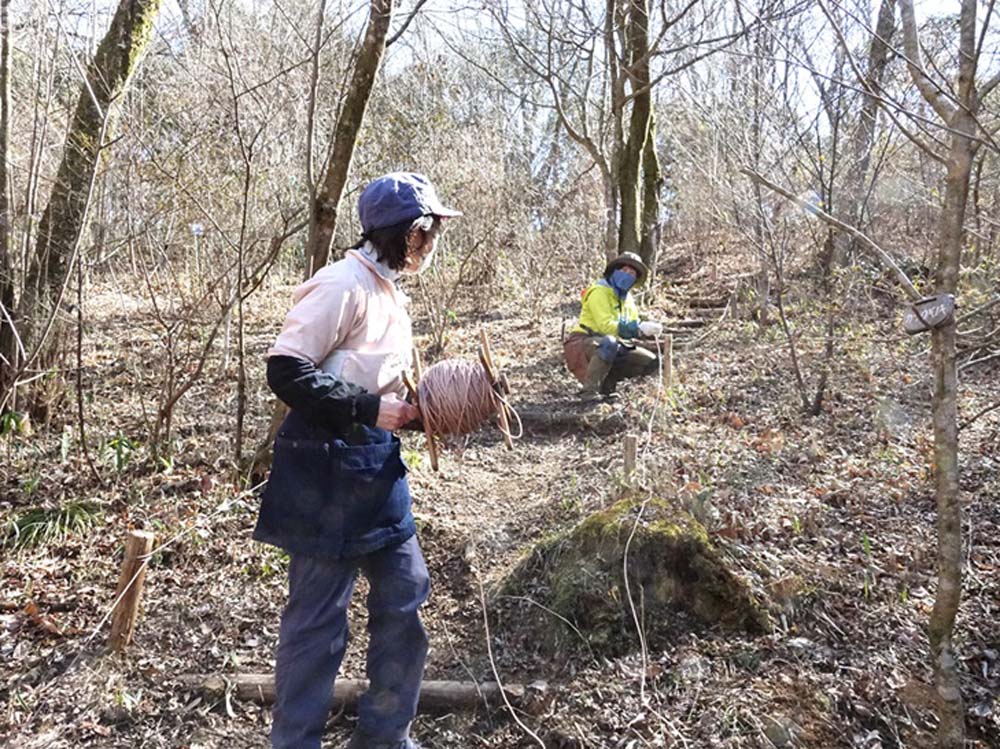 2月22日(日)、28日(土)、3月8日(日)、21日(土)に杭作り・コースロープ張り等の観察路の整備作業をします。
