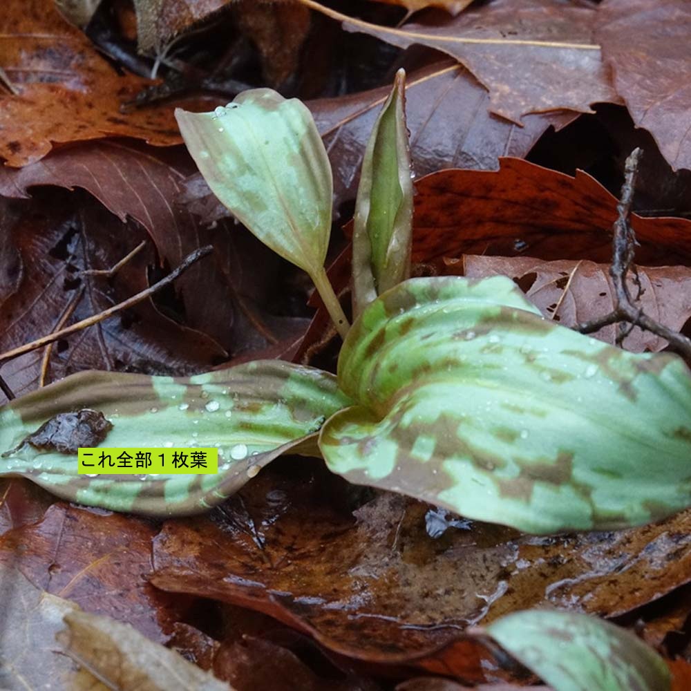 花芽を付けた2枚葉が初めて確認できました。まだ2か所で数株しか出ていません。