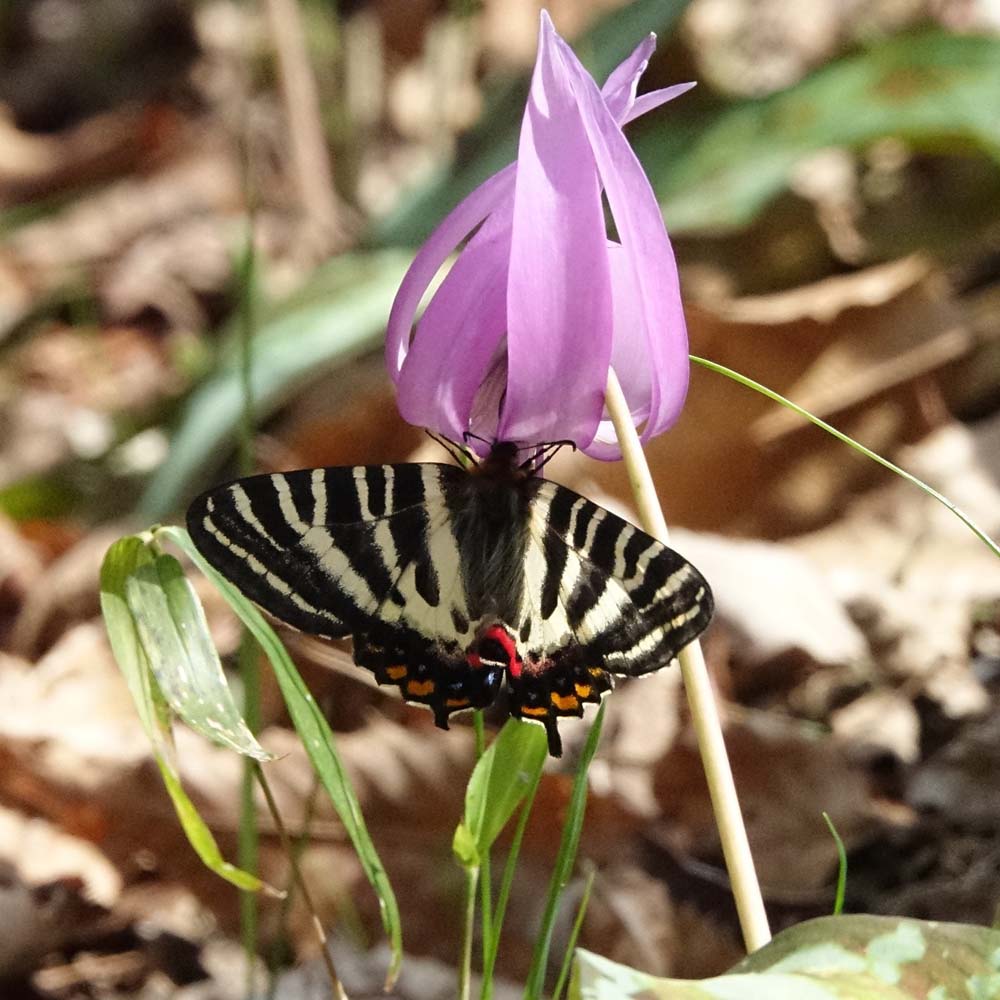 カタクリは昆虫と共生している虫媒花で、マルハナバチやギフチョウなどの送粉昆虫(ポリネーター)に依存しています。カタクリの開花と送粉昆虫