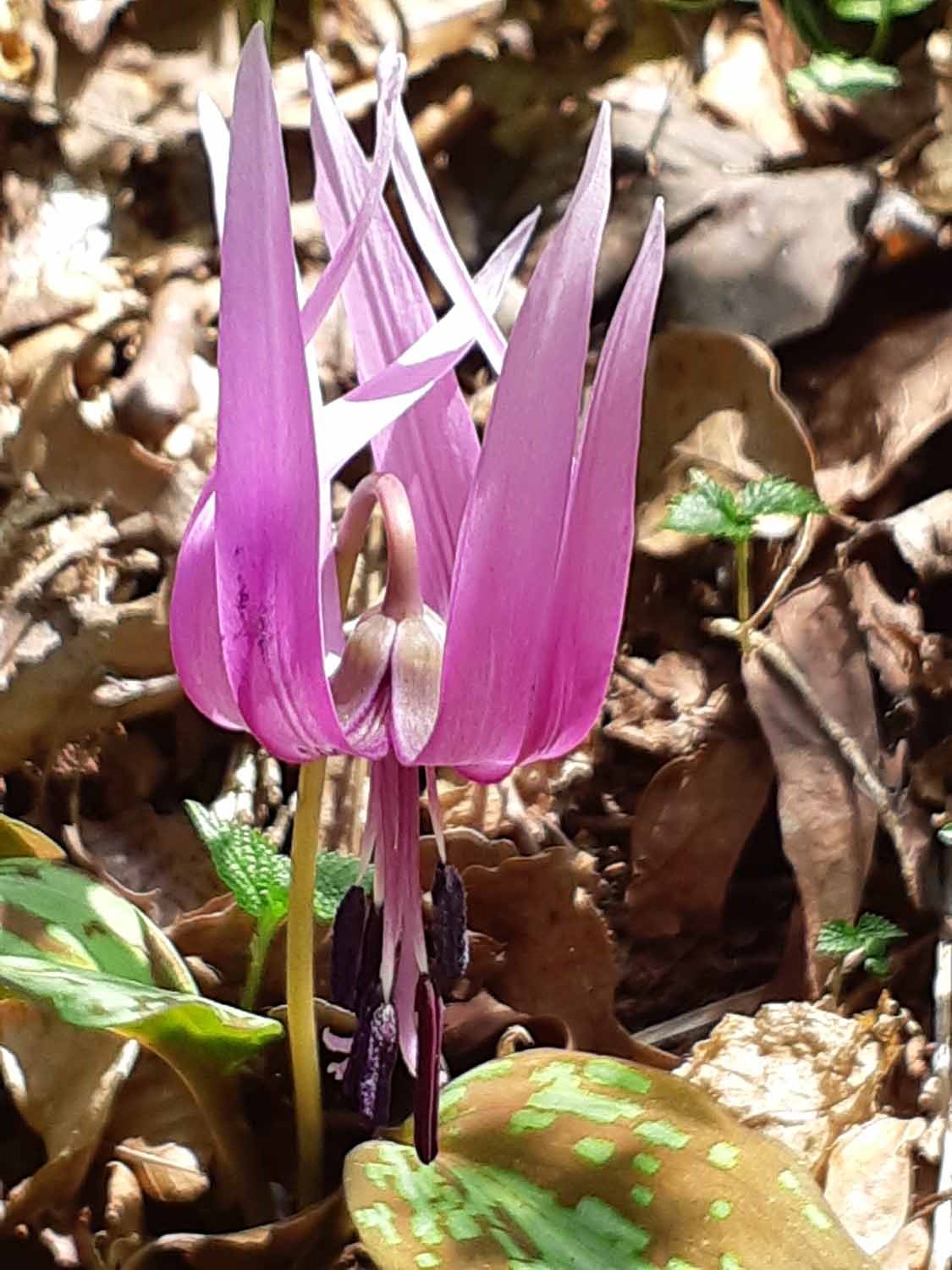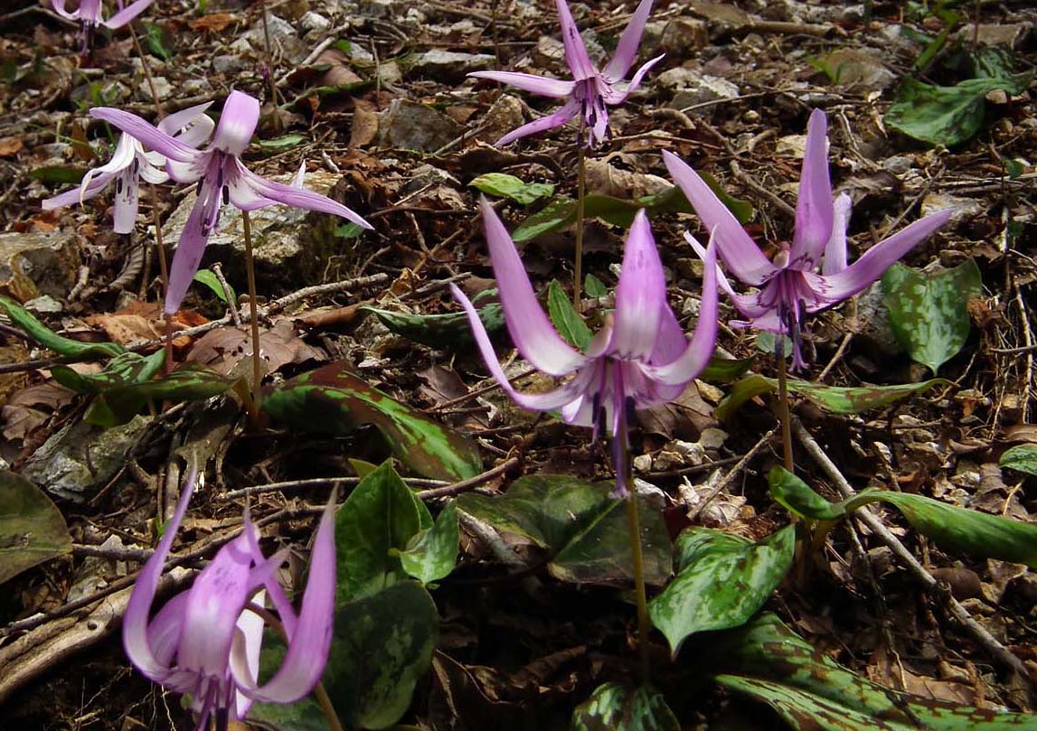 カタクリはユリ科の植物です。以前は鱗茎の澱粉から片栗粉を取りました。信州や東北ではどこにでもあるので山菜料理で食べています。