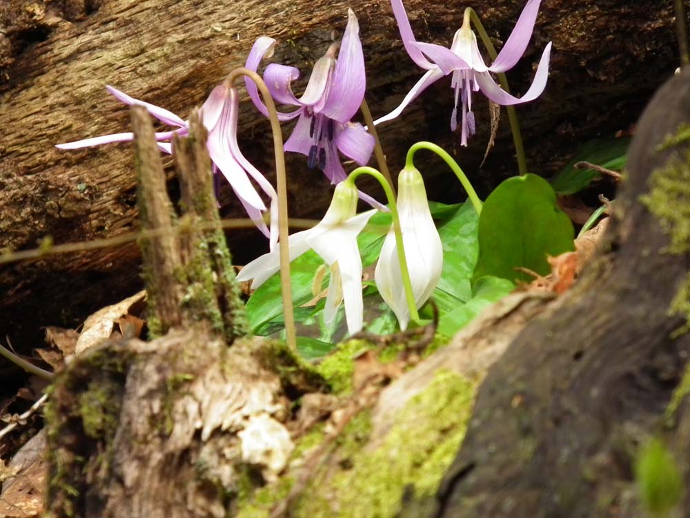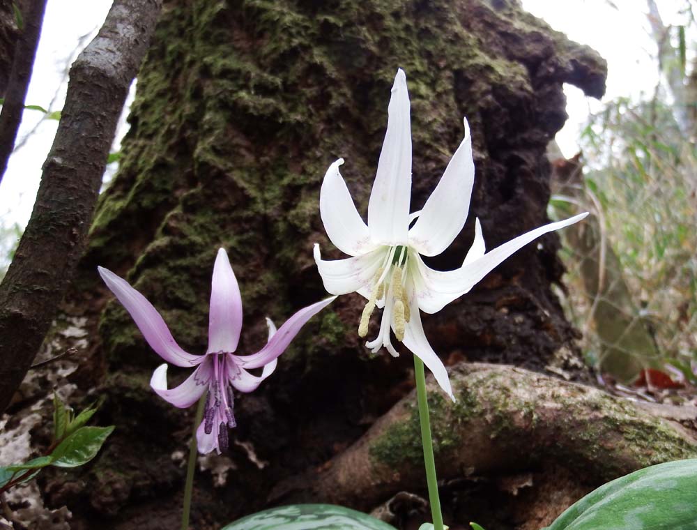 カタクリは落葉樹林の中で育ちます。常緑樹林では育ちません。冷涼な中部地方以北には広く分布し、